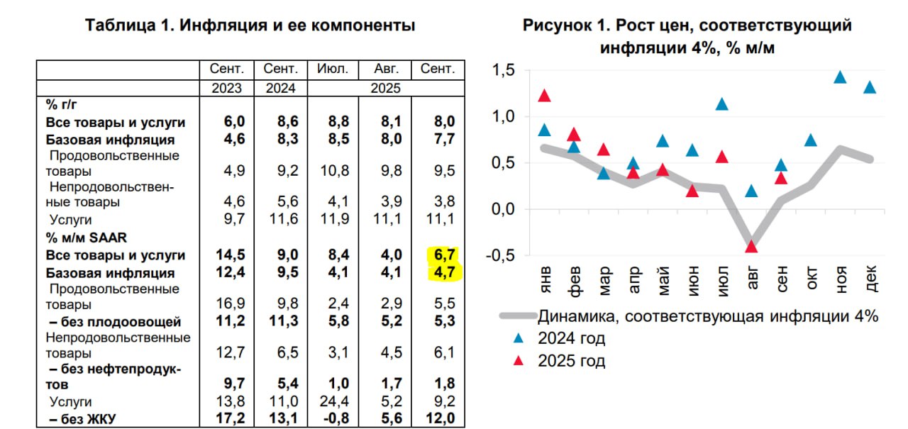 Оценка инфляции в сентябре 6.7% (SAAR), юазовая инфляция ускорилась до 4.7% (SAAR).