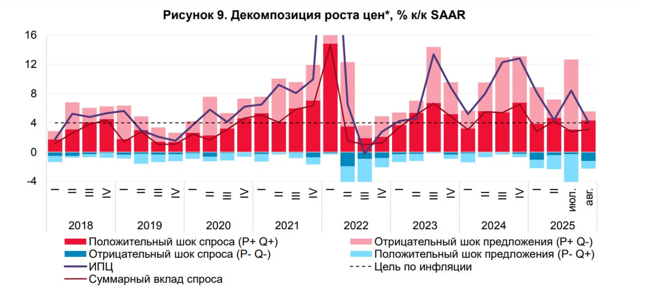 «агрегированный внешний спрос на товары российского экспорта снизился… что касается агрегированного внутреннего спроса, то он продолжает расти … достижение цели по потребительской инфляции, вероятно, произойдет при более низких темпах роста ВВП»