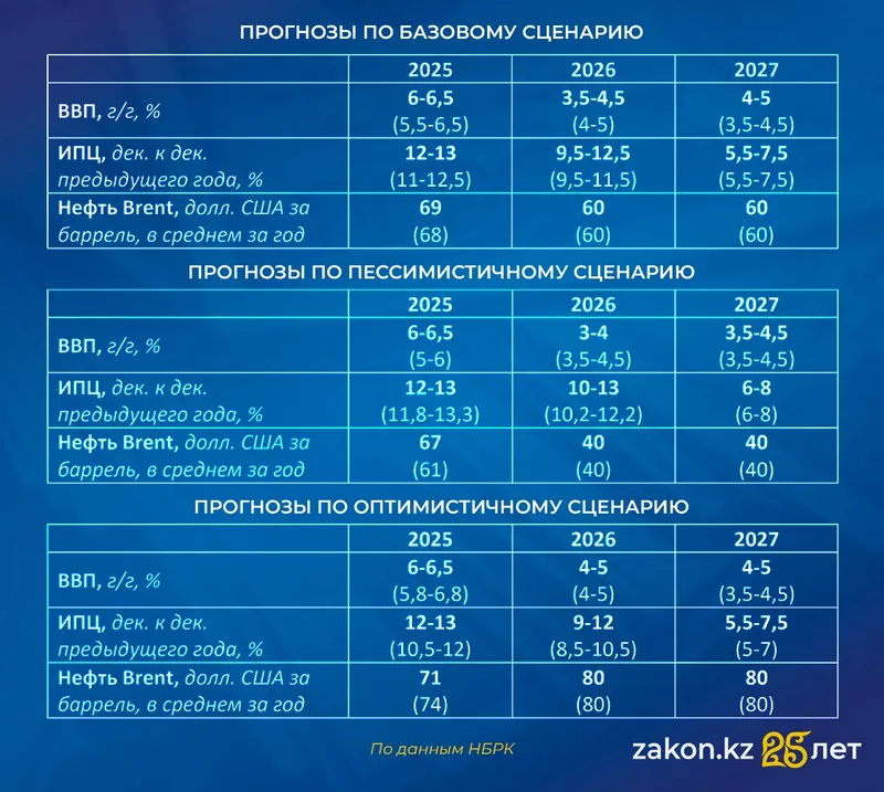 Таким образом, ключевым фактором, определяющим темпы роста экономики и инфляцию в Казахстане, остается цена на нефть. Разница между пессимистичным и оптимистичным сценариями по росту ВВП в 2026 году составляет целый процентный пункт (от 3-4% до 4-5%).