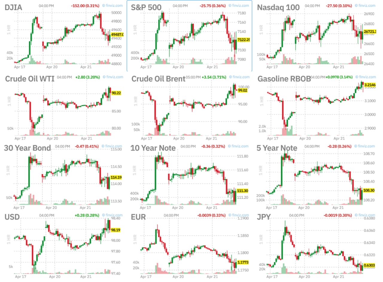 Пока ситуация с главой ФРС остается подвершенной, но рынки от таких речей приуныли, а потом еще больше приуныли от срыва переговоров Ирана и США … правда Трамп им подкинул конфетку «по просьбе Пакистана» продлив перемирие, но продолжив блокаду. На что Иран заявил, что об этом не просил и продление перемирия не имеет смысла…